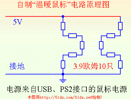 自制“温暧鼠标”电路原理图: