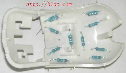 在外壳上插好电阻,如果用胶水的话,请自己想办法如何固定吧。