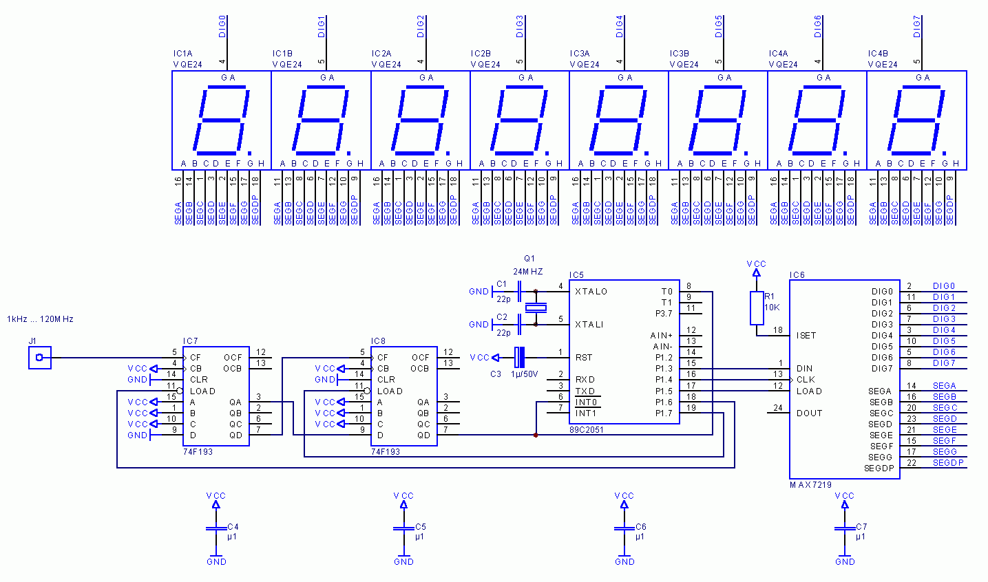 大家对 C51 系列比较熟悉, 所以再转贴一个 89C2051 的 120 MHz 频率计 供大家参考.(没有 PCB 图)