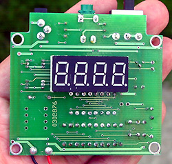 仪器按原理图装配完毕,CF01的引脚尽可能短,以减小测量误差。程序调试无误后写入IC01。温度检测仪无需调试即可工作;湿度检测计需调试工作点,业余条件下可自行创造一封闭环境进行湿度标定,在25℃环境温度下加湿,用高精度水银套管干湿球计测量湿度值,使环境相对湿度在90%处时稳定一段时间,用数字频率计测量IC02的3脚,调整W01值使输出频率为5870HZ;再将环境相对湿度调在30%处,微调W01使输出频率为7090HZ,反复多次上述过程即可完成标定工作。