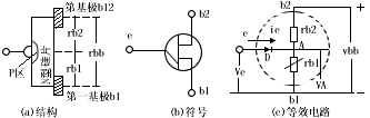 | 选择分类:当前分类——实验基础 相关联或者相类似的文章: 发光二极管的几种特殊用法(1236) 集成电路的检测常识(793) 用万用表判断电容器质量(777) 晶体二极管的主要参数(773) 无线遥控门铃(747) 万用表常见故障及原因(715) 电路中电容的选择(706) 烧坏遥控器给手机充电 专家试解身体静电之谜(692) 几种常用电容器的结构和特点(682) 集成电路的检测方法(679) 晶体二极管的分类(606) 检查大功率双向晶闸管触发能力的方法 (559) 双向晶闸管(TRIAC)(544) 单结晶体管原理(543) 小小电容之大大观(502) 怎样拆卸电路板上的集成电路块(485) 检查晶闸管的触发能力四种方法(425) 省电实用的电话灯(395) 如何鉴别可控硅的三个极(347) 蝙蝠牌电蚊拍故障检修(304) 首页 前页 后页 尾页 本站推荐: | 单结晶体管原理 单结晶体管(简称UJT)又称基极二极管,它是一种只有一个PN结和两个电阻接触电极的半导体器件,它的基片为条状的高阻N型硅片,两端分别用欧姆接触引出两个基极b1和b2。在硅片中间略偏b2一侧用合金法制作一个P区作为发射极e。其结构、符号和等效电呼如图1所示。 ![]() 图1、单结晶体管 一、单结晶体管的特性 从图1可以看出,两基极b1与b2之间的电阻称为基极电阻: rbb=rb1+rb2 式中:rb1----第一基极与发射结之间的电阻,其数值随发射极电流ie而变化,rb2为第二基极与发射结之间的电阻,其数值与ie无关;发射结是PN结,与二极管等效。 若在两面三刀基极b2、b1间加上正电压Vbb,则A点电压为: VA=[rb1/(rb1+rb2)]vbb=(rb1/rbb)vbb=ηVbb 式中:η----称为分压比,其值一般在0.3---0.85之间,如果发射极电压VE由零逐渐增加,就可测得单结晶体管的伏安特性,见图2 ![]() 图2、单结晶体管的伏安特性 (1)当Ve<η Vbb时,发射结处于反向偏置,管子截止,发射极只有很小的漏电流Iceo。 (2)当Ve≥η Vbb+VD VD为二极管正向压降(约为0.7伏),PN结正向导通,Ie显著增加,rb1阻值迅速减小,Ve相应下降,这种电压随电流增加反而下降的特性,称为负阻特性。管子由截止区进入负阻区的临界P称为峰点,与其对就的发射极电压和电流,分别称为峰点电压Vp和峰点电流Ip和峰点电流Ip。Ip是正向漏电流,它是使单结晶体管导通所需的最小电流,显然Vp=ηVbb (3)随着发射极电流ie不断上升,Ve不断下降,降到V点后,Ve不在降了,这点V称为谷点,与其对应的发射极电压和电流,称为谷点电压,Vv和谷点电流Iv。 (4)过了V点后,发射极与第一基极间半导体内的载流子达到了饱和状态,所以uc继续增加时,ie便缓慢地上升,显然Vv是维持单结晶体管导通的最小发射极电压,如果Ve 二、单结晶体管的主要参数 (1)基极间电阻Rbb 发射极开路时,基极b1、b2之间的电阻,一般为2--10千欧,其数值随温度上升而增大。 (2)分压比η 由管子内部结构决定的常数,一般为0.3--0.85。 (3)eb1间反向电压Vcb1 b2开路,在额定反向电压Vcb2下,基极b1与发射极e之间的反向耐压。 (4)反向电流Ieo b1开路,在额定反向电压Vcb2下,eb2间的反向电流。 (5)发射极饱和压降Veo 在最大发射极额定电流时,eb1间的压降。 (6)峰点电流Ip 单结晶体管刚开始导通时,发射极电压为峰点电压时的发射极电流 1、 本站不保证以上观点正确,就算是本站原创作品,本站也不保证内容正确。 2、如果您拥有本文版权,并且不想在本站转载,请书面通知本站立即删除并且向您公开道歉! |