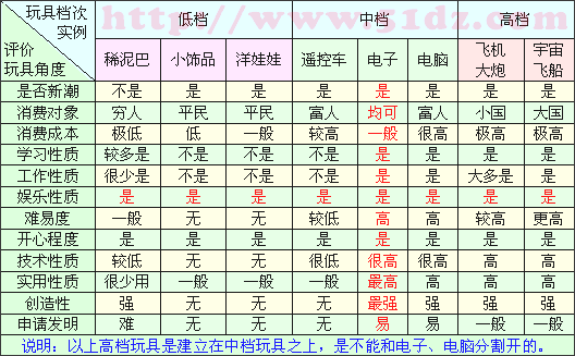 为了学到知识,为了挣到钞票,为了满足好奇心,全人类过去在玩,今天在玩,明天还要玩!所以说,全世界都是大家玩出来的。您喜欢的玩具多吗?您会玩的玩具多吗?您认为您的工作是在玩吗?玩泥巴?玩电子?玩电脑?玩飞机大炮?玩宇宙飞船?您在玩什么呢?我们针对“玩”的特点性质做了一个初步的分析,请大家参见下表: