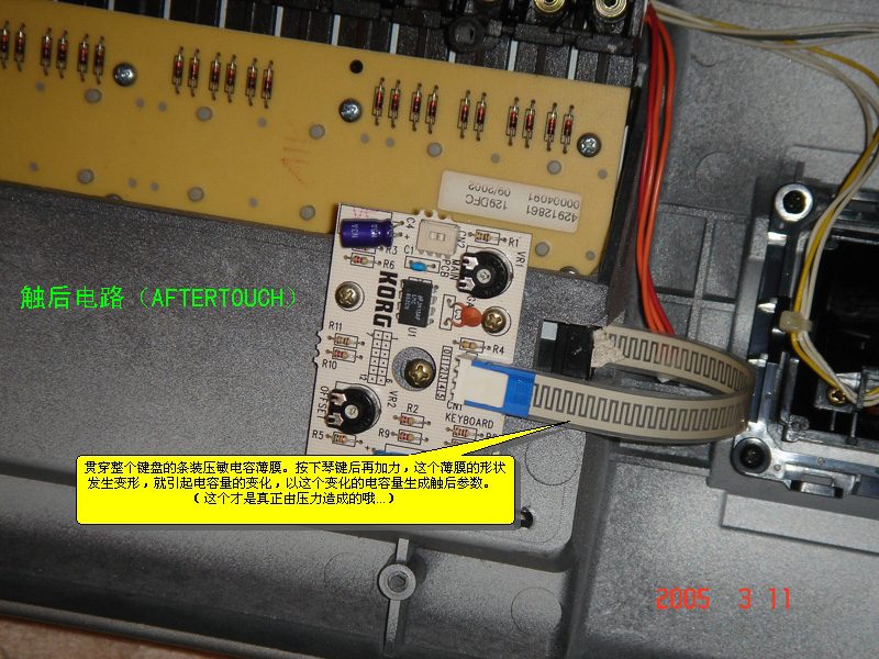 最后,再顺便说说Aftertouch(触后)参数,这在MIDI键盘上是另一种独立电路产生的,请看图: