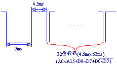 16位地址码的最短宽度:1.12×16=18ms 16位地址码的最长宽度:2.24ms×16=36ms