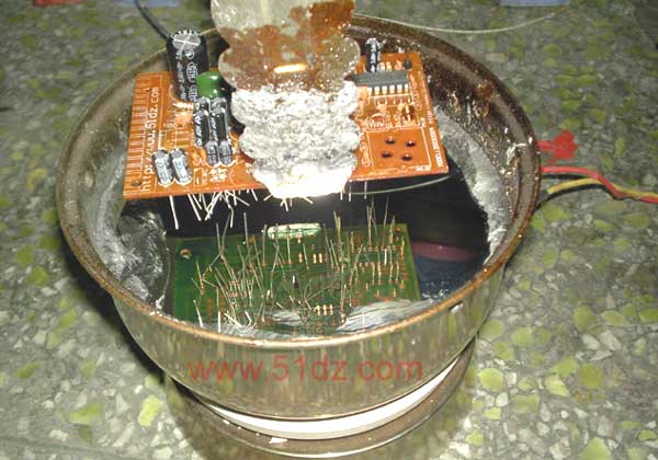 | 选择分类:当前分类——电子入门 相关联或者相类似的文章: 免费抄版软件——文字或图片转PCB文件(31341) 节能灯套件制作说明(9999) USB充电器套件制作说明(3141) 交、直流电大揭秘---通俗理解法(2597) 常用集成电路功能列表(2086) 电子基础知识--电阻篇(1748) 什么是压敏电阻?(1644) 什么是电平?(1644) 什么是“压敏电阻”(1644) [原创]最新智能色环电阻识别程序(1517) 整流电路详解 (1381) 本站免费资料的网址(1329) 爱好捕鱼的朋友千万别错过!(我的电鱼机制作经历)(1322) 测电阻法(1279) 电子基础知识--电感(1239) 充满电磁波的天空 (1194) 识别色环电阻的阻值...(1141) 了解隔离变压器(1116) 电烙铁的妙用(1109) 麻烦的USB硬盘和延长线(电子知识)(1105) 首页 前页 后页 尾页 本站推荐: | 电子线路板的简易加工图片展 如果产品生产的数量较少,大型的电子厂家就不愿意为你生产加工。即使愿意为你加工,你的加工费将因为数量小变得非常非常的昂贵,甚至仅仅加工费就远远超过成品板的价值。 但是,有时又需要生产几十、几百块板,难道你用电烙铁一个一个的焊接?那样成本也会很贵。 有没有一个低成本的方法呢?有,只要有电饭煲就可以了。请看以下组图: 先将电子元件插在电路板上并放好,注意先插小元件,注意压平元件; ![]() 插好的板一定要放在稳妥的地方,防止碰翻元件掉落; ![]() 将焊锡条放入锅中用电炉加热到全部熔化,有条件的可以安装自动温控器,也可以测量温度,温度一般在250-350度之间为宜。 如果条件都没有的话,就只有通过经验来决定了。大家可以看见图中熔化的锡象镜子一样反光,有清晰的倒影。(用干硬纸皮拨开锡面一个空间)。 ![]() 还需要松香水。松香水就是将松香放入酒精中熔解即可。酒精易挥发,注意控制浓度好象是浓茶的样子即可。浓点、淡点问题都不是很大,请根据实际经验定。 ![]() 先用金属的夹子(卖馒头面包的几块钱的就可以用,没必要买专业的)夹住板先浸一个松香水,注意松香水不要打湿电路板正面。 ![]() 再将板放进熔化的锡炉,注意不要紧张,虽然下面有三百度的高温,但你的手在十几个厘米外,非常安全的。 ![]() 先拨开锡面的锡渣,让线路板底面均匀接触锡面,此时有吱吱声和烟雾。将焊接时间控制在2到3秒左右。 ![]() 拿起线路板,看看,效果非常好,接着做下一个吧! ![]() 下图中有一块中有很大的连接,锡陀,这是焊接时间偏短或者锡炉温度低的原因。 ![]() 如果线路烫起泡,则是焊的时间偏长或者锡炉温度高。焊好的板,元件不会掉了,可以乱放。 ![]() 以上动作并不难,很简单,试一下就会了,但是,请大家注意安全,锡炉本身要放在非常稳妥的地方,注意什么东西都不要掉进锡炉(特别是浸板时要注意,防止板掉进锡炉。 声明:本站不对大家的模仿带来的任何损失负责,请小心小心再小心的操作! 参考经验: 选用口径小的锡炉,可以一次投入较少的焊锡(一般要保证有5CM左右或者更深的深度)。否则,可能第一次要放入400元以上的焊锡哟! 锡炉加热和冷却的过程分别需要30分钟到2个小时的时间之久,所以,请提前做好准备。 有条件的可以用自动温度控制器控制锡炉温度。本站有几个转让,去商城特价处理区找看还有没有。 以上图说明,用电炉也可以当作锡炉完成大量的焊接工作。欢迎转载,请常来本站。 1、 本站不保证以上观点正确,就算是本站原创作品,本站也不保证内容正确。 2、如果您拥有本文版权,并且不想在本站转载,请书面通知本站立即删除并且向您公开道歉! |