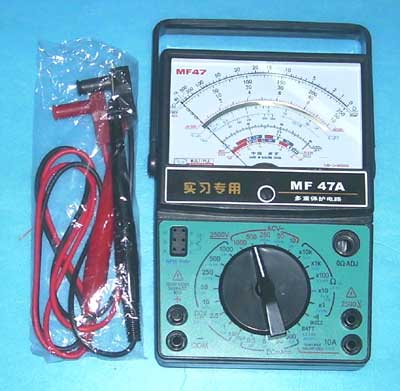万用表是一种多功能、多量程的便携式电工仪表,一般的万用表可以测量直流电流、交直流电压和电阻,有些万用表还可测量电容、功率、晶体管共射极直流放大系数hFE等。MF47型万用表具有26个基本量程和电平、电容、电感、晶体管直流参数等7个附加参考量程,是一种量限多、分档细、灵敏度高、体形轻巧、性能稳定、过载保护可靠、读数清晰、使用方便的新型万用表。 万用表是电工必备的仪表之一,每个电气工作者都应该熟练掌握其工作原理及使用方法。通过本次万用表的原理与安装实习,要求学生了解万用表的工作原理,掌握锡焊技术的工艺要领及万用表的使用与调试方法。