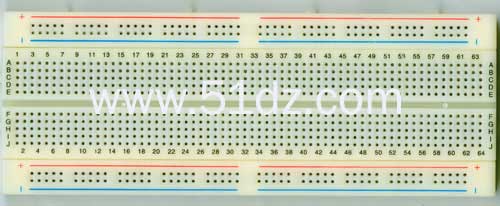 面包板是又名实验板,它是一种具有多孔插座的插件板,复杂电路、多引脚元器件均可使用。熟练掌握面包板的使用方法是提高实验效率,减少实验故障出现机会的基础之一。在具体使用的时候,通常是两窄一宽同时使用,两个窄条的第一行一般和地线连接,第二行和电源相连。由于集成块电源一般在上面,接地在下面,如此布局有助于将集成块的电源脚和上面第二行窄条相连,接地脚和下面窄条的第一行相连,减少连线长度和跨接线的数量。中间宽条用于连接电路,由于凹槽上下是不连通的,所以集成块一般跨插在凹槽上。许多电子爱好者及职业学校的学生在做实验时都用此板,使用方便简单。
