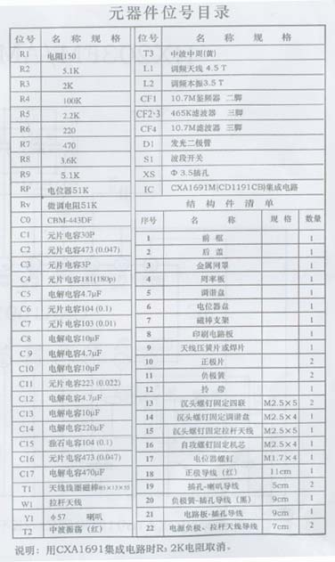 该收音机套件采用的1191双列28脚贴片封装的集成电路为主体,加上一些外围元件构成的微型低压收音机, 学校可以根据这个电路来讲解集成电路收音机的工作原理和知识, 这跟市面上的销售调频调幅收音机原理大同小异。1191包含了AM/FM收音机从天线输入至音频功率输出的全部功能。