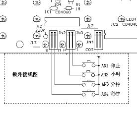 时间设置: 板上不带设置开关,调整时间需要导线分别短接对应插针。