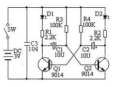 当你在醉心的玩赏动物布娃娃时,如果布娃娃的那对眼睛能发出光来,忽闪急闪的眨呀眨,你是不是感到又特别一翻滋味呢?这里提供了一个小兔子眨眼睛,电子闪光胸花的电路,电路简单,不需要调试即可工作。