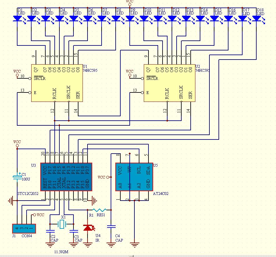 平面点阵的电路原理图请点这里放大。