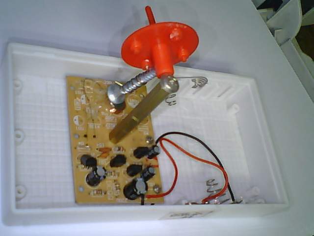 还有,大家在安装时要注意,套件中有一个螺丝固定弹簧,通过旋转螺丝就可以调节螺丝到经圈的距离,这非常方便,但是请用工具旋转,不要用手直接旋转,小心手的安全,不要让螺丝和弹簧刺伤了手,我们实在是不希望大家收到血的教训。如果有人因为本站电子制作而受伤,我们会感到非常难过,但是我们不会同情,也不会承担任何责任,请谅解!