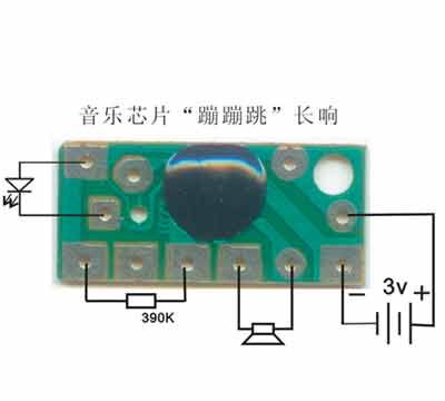 蹦蹦跳+闪灯!长响,规格:长24mm,宽11.2mm欢迎各位电子爱好者邮购、选购。只需花小小钱就可帮你的弟弟妹妹制作一个理想的玩具,同是也可以配合电子实验套件使用,品种很多。芯片里固化了一种音乐,蹦蹦跳闪灯!。本站配套的电阻、喇叭、电池盒、导线都有,找不到也搜索关键字,搜索商品名就会跳出来。