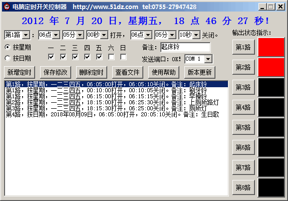 本软件最多支持255条(次)设定值,单路设定次数不限!但是,总次数只能小于255!不过,本软件是完全免费的!需要更多次数和更多路数都需要联系我们更改软件。