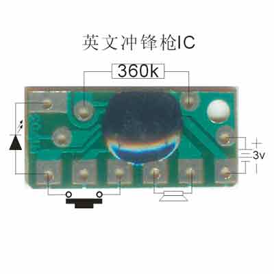 接线图跟英文枪的一样,发光二极管可接可不接,大家可以根据需要接,只是一种指示作用。不过马叫声电阻取值:220K。