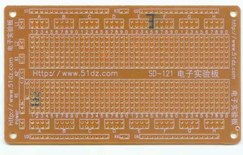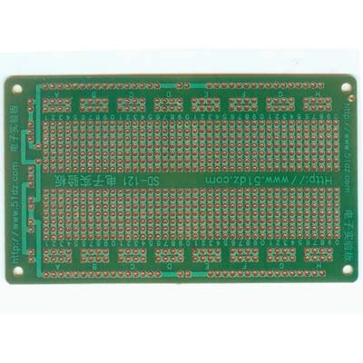 我要电子网站的专用连体万能线路母板,分大小两种,此种是大块的,规格:121×70mm,板厚1.6mm,绿油和白字。这种万能板大家可以根据板上的规则,可省去很多的连线,各位电子爱好者可以根据自己制作的需要而定。详见下图所示。