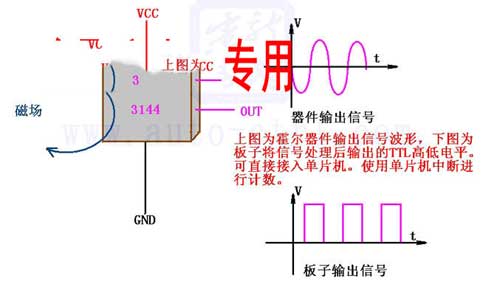 简要说明: 一、 尺寸:32mm X11mm X 20mm 长X宽X高 二、 主要芯片:LM393、霍尔开关3144 三、 工作电压:直流4~6伏 四、 特点:1、具有信号输出指示。 2、单路信号输出。 3、输出有效信号为低电平。 4、有磁场切割就有信号输出 5、可用于电机测速/位置检测等场合