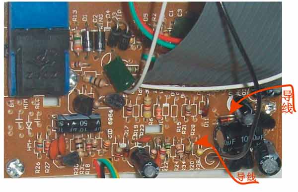 2)连接616E4C听筒插座,听筒插座已带四根线,红线、黄线、绿线和黑线的接法。注意看下面的接线图;