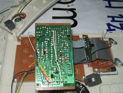 5) 用13P排线将按键板和显示组件连起来,注意上面标注要对应,其中2条可以拆开直接焊在红色的发光二极管上,电源指示用;将指示灯要插到面壳的孔里面,这样指示灯就比较明显。11条接到按键板上。如下图所示