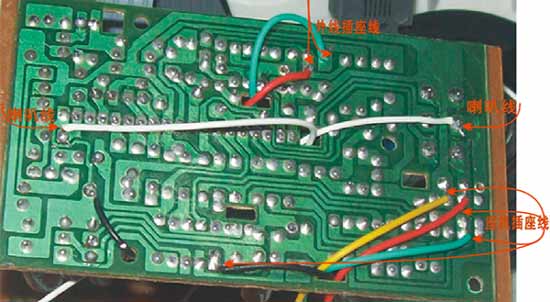 手柄部分元件简单,注意咪头的正负极,红色接正,绿色接负极,两条长线黑色和黄色线接150Ω喇叭,150Ω喇叭不分正负极。