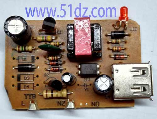USB充电器套件,又名开关电源套件,输入AC160-240V,50/60Hz,额定输出:DC 5V 500mA(如果要长期输出更大电流,请更换Q1为13003)。USB电源在全国范围大量流行,不过作为日常用品的充电器由于直接和220V高压相连,具有故障率较高,容易损坏的特点,特别是买到那些不成熟的产品后,真是苦不看言。最后,受学校老师委托,我们联系到了一款成熟量产的充电器套件,现在一同给广大电子爱好者分享。