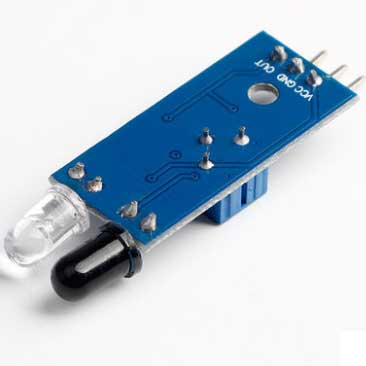 二 模块参数说明 1 当模块检测到前方障碍物信号时,电路板上绿色指示灯点亮电平,同时OUT端口持续输出低电平信号,该模块检测距离2~60cm,检测角度35°,检测距离可以通过电位器进行调节,顺时针调电位器,检测距离增加;逆时针调电位器,检测距离减少。 2、传感器主动红外线反射探测,因此目标的反射率和形状是探测距离的关键。其中黑色探测距离最小,白色最大;小面积物体距离小,大面积距离大。 3、传感器模块输出端口OUT可直接与单片机IO口连接即可,也可以直接驱动一个5V继电器;连接方式:VCC-VCC;GND-GND;OUT-IO 4、比较器采用LM393,工作稳定; 5、可采用3-5V直流电源对模块进行供电。当电源接通时,红色电源指示灯点亮; 6、具有3mm的螺丝孔,便于固定、安装; 7、电路板尺寸:3.1CM*1.5CM 8、每个模块在发货已经将阈值比较电压通过电位器调节好,非特殊情况,请勿随意调节电位器。