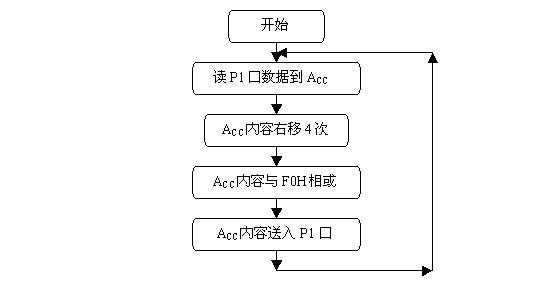 对于开关状态检测,相对单片机来说,是输入关系,我们可轮流检测每个开关状态,根据每个开关的状态让相应的发光二极管指示,可以采用JB P1.X,REL或JNB P1.X,REL指令来完成;也可以一次性检测四路开关状态,然后让其指示,可以采用MOV A,P1指令一次把P1端口的状态全部读入,然后取高4位的状态来指示。