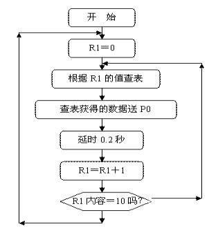 (2. 由于显示的数字0-9的字形码没有规律可循,只能采用查表的方式来完成我们所需的要求了。这样我们按着数字0-9的顺序,把每个数字的笔段代码按顺序排好!建立的表格如下所示:TABLE DB 3FH,06H,5BH,4FH,66H,6DH,7DH,07H,7FH,6FH