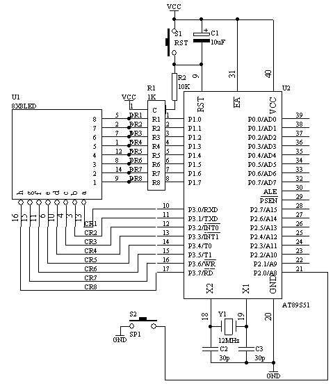 (1). 把“单片机系统”区域中的P1端口用8芯排芯连接到“点阵模块”区域中的“DR1-DR8”端口上;