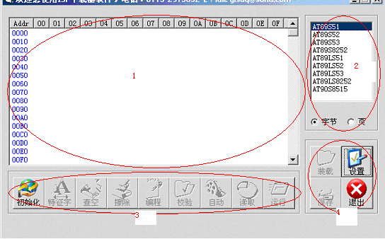 (4). 擦除:是把单片机的内容擦除干净,即单片机内部ROM的内容全为FFH。